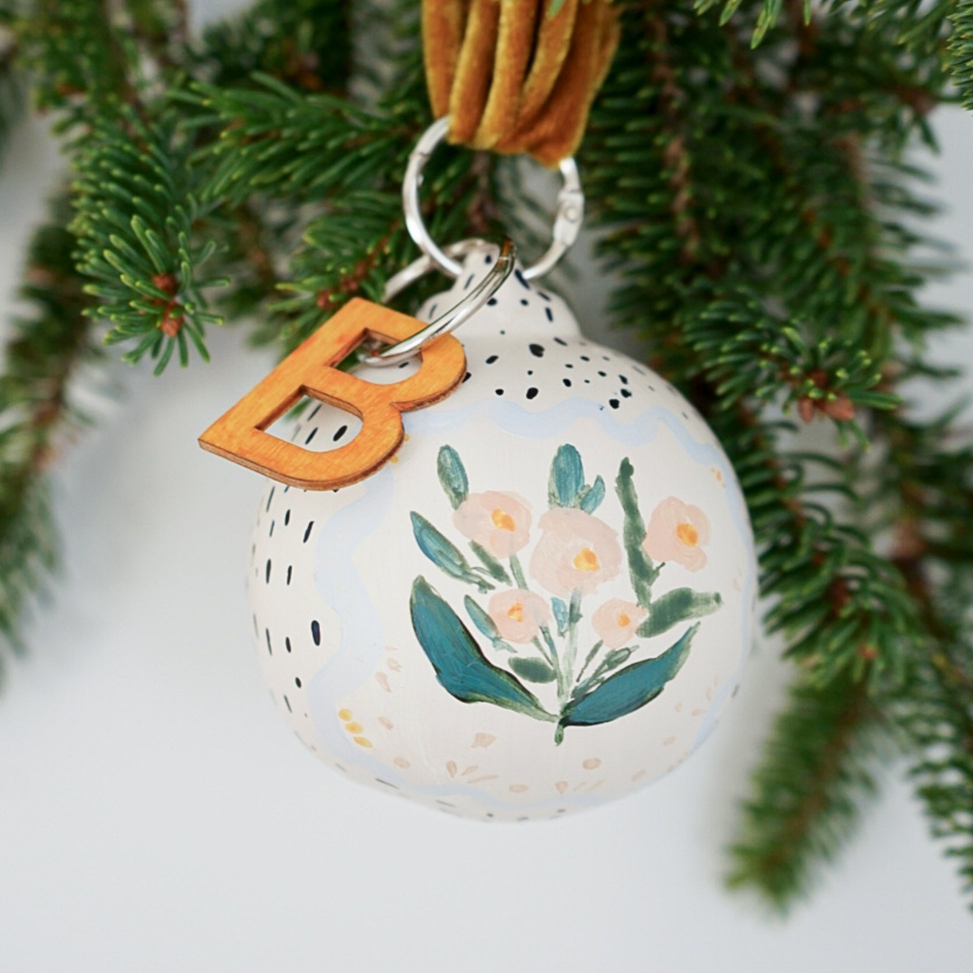 * (optional) Charm: your chosen letter is made from wood and painted in one of the colors found on the ornament.